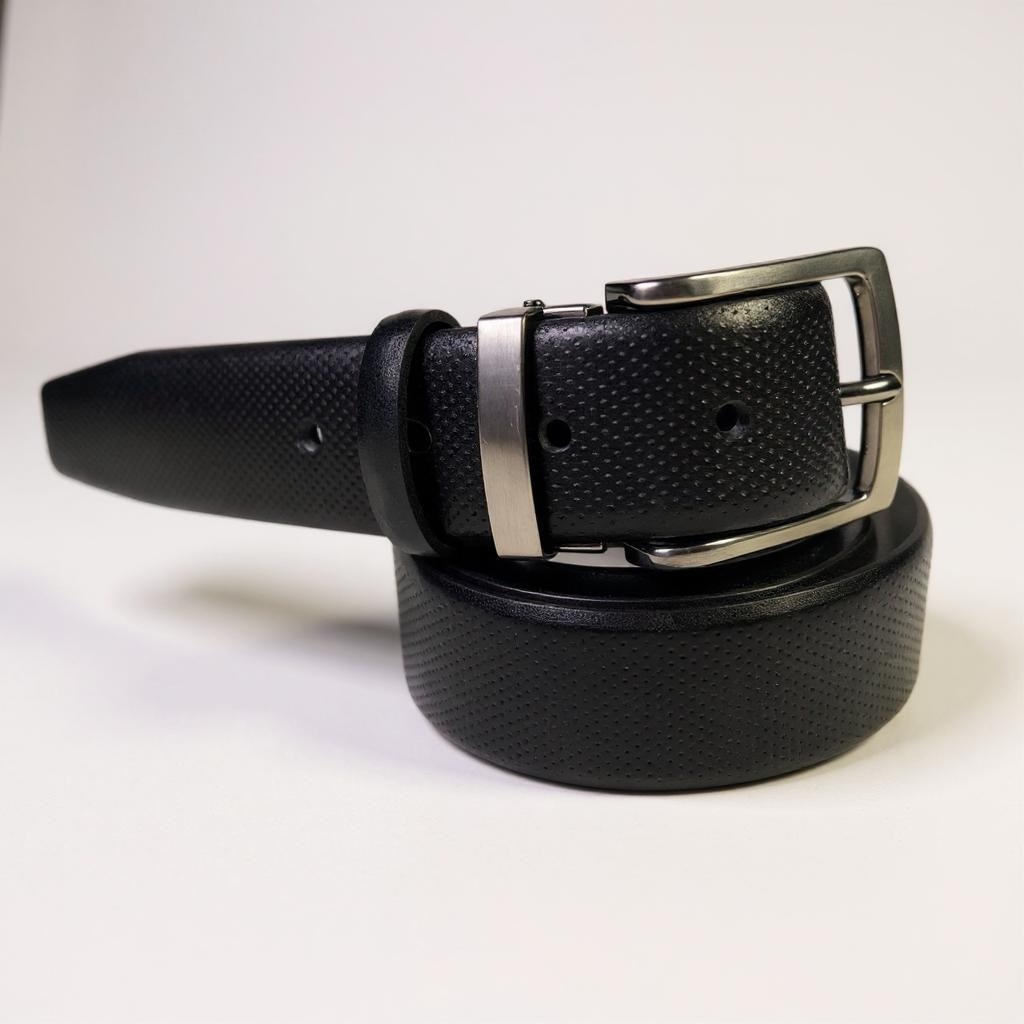 Ανδρική δερμάτινη ζώνη σε χρώμα μαύρο Κατασκευασμένη από ποιοτικό δέρμα, καθιστώντας την ιδανική επιλογή σε κάθε ντύσιμο, από τζιν μέχρι και κοστούμι.Το φάρδος της ζώνης είναι στα 3,5 εκ.