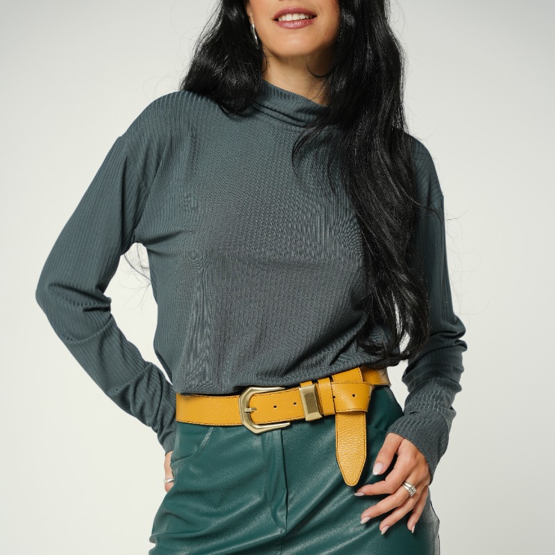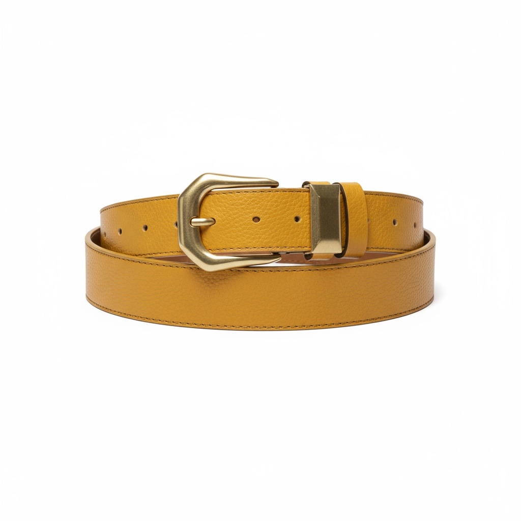 Η γυναικεία κίτρινη δερμάτινη ζώνη με χρυσή αγκράφα είναι το statement κομμάτι που φέρνει φως στις χειμερινές εμφανίσεις. Το ζεστό κίτρινο χρώμα της σπάει τη μονοτονία των σκούρων τόνων του χειμώνα, ενω η χρυσή αγκράφα προσθέτει μια διακριτική αίσθηση πολυτέλειας. Ιδανική για να συνδυαστεί με μάλλινα φορέματα παλτό ή κομψά σύνολα σε ουδέτερες αποχρώσεις δίνει έμφαση στη μέση και ζωντάνια στο στυλ