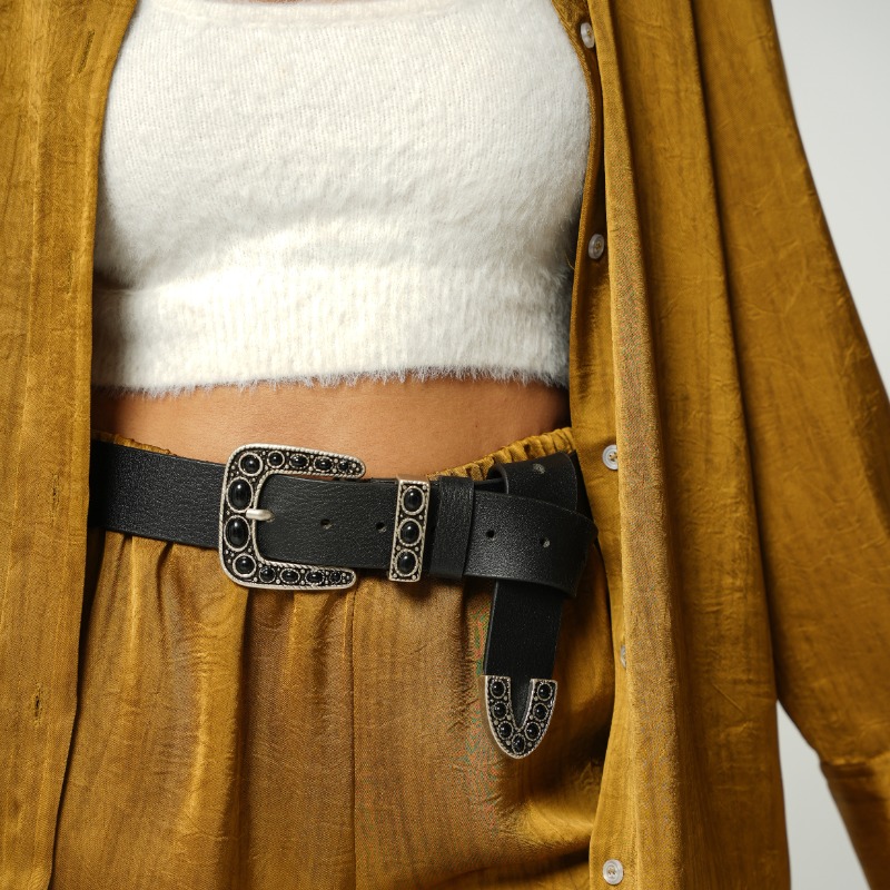 Η Nuit Mysterieuse είναι μια δερμάτινη ζώνη που ενώνει το μυστήριο με την κομψότητα. Η διακοσμημένη αγκράφα της προσθέτει βάθος και χαρακτήρα, ενώ το μαύρο δέρμα την καθιστά ευέλικτη επιλογή για κάθε στυλ. Από ένα χαλαρό καθημερινό outfit έως ενα πιο εκλεπτυσμένο βραδινό look , αποτελεί το αξεσουαρ που δίνει την τελική πινελιά ισορροπίας ανάμεσα στο chic και το edgy.