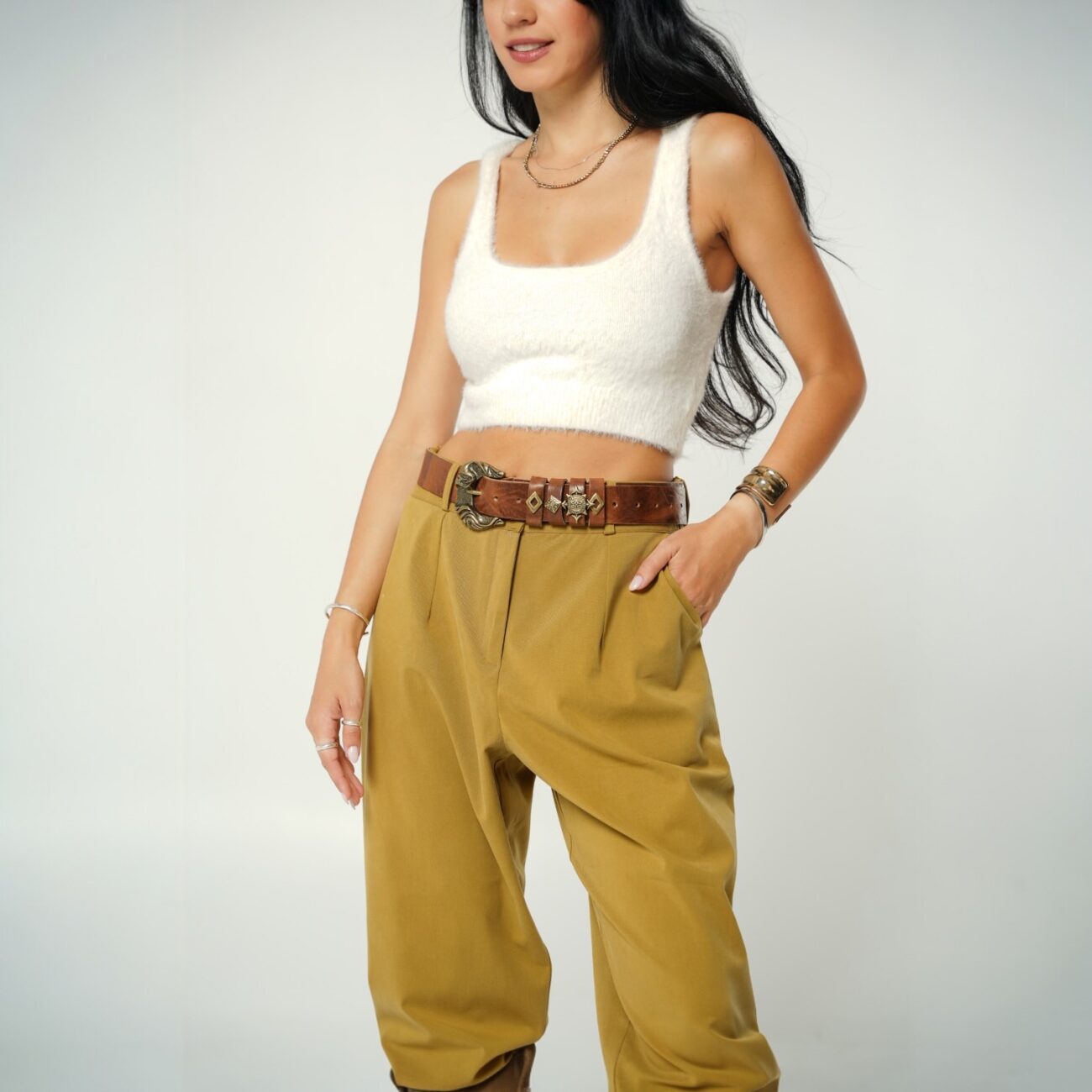 H ζώνη αυτή συνδυάζει το αυθεντικό western πνεύμα με μια διακριτική αίσθηση πολυτέλείας. Σε ζεστό καφέ χρώμα και με περίτεχνα σκαλισμένα μεταλλικά στοιχεία, γίνεται statement αξεσουάρ που δένει άψογα με high-waist παντελόνια, φορέματα ή oversized πουκάμισα. Ένα κομμάτι που απογειώνει κάθε look με τον μοναδικό του χαρακτήρα